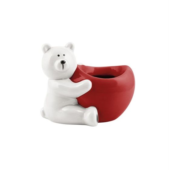 Dekoratívny keramický obal s medvedíkom. Farba biela/červená. Vhodná na darčekové balenie alebo na ďalšie dekorovanie. Rozmery výška 106 mm, šírka 96 mm, dĺžka 128 mm.