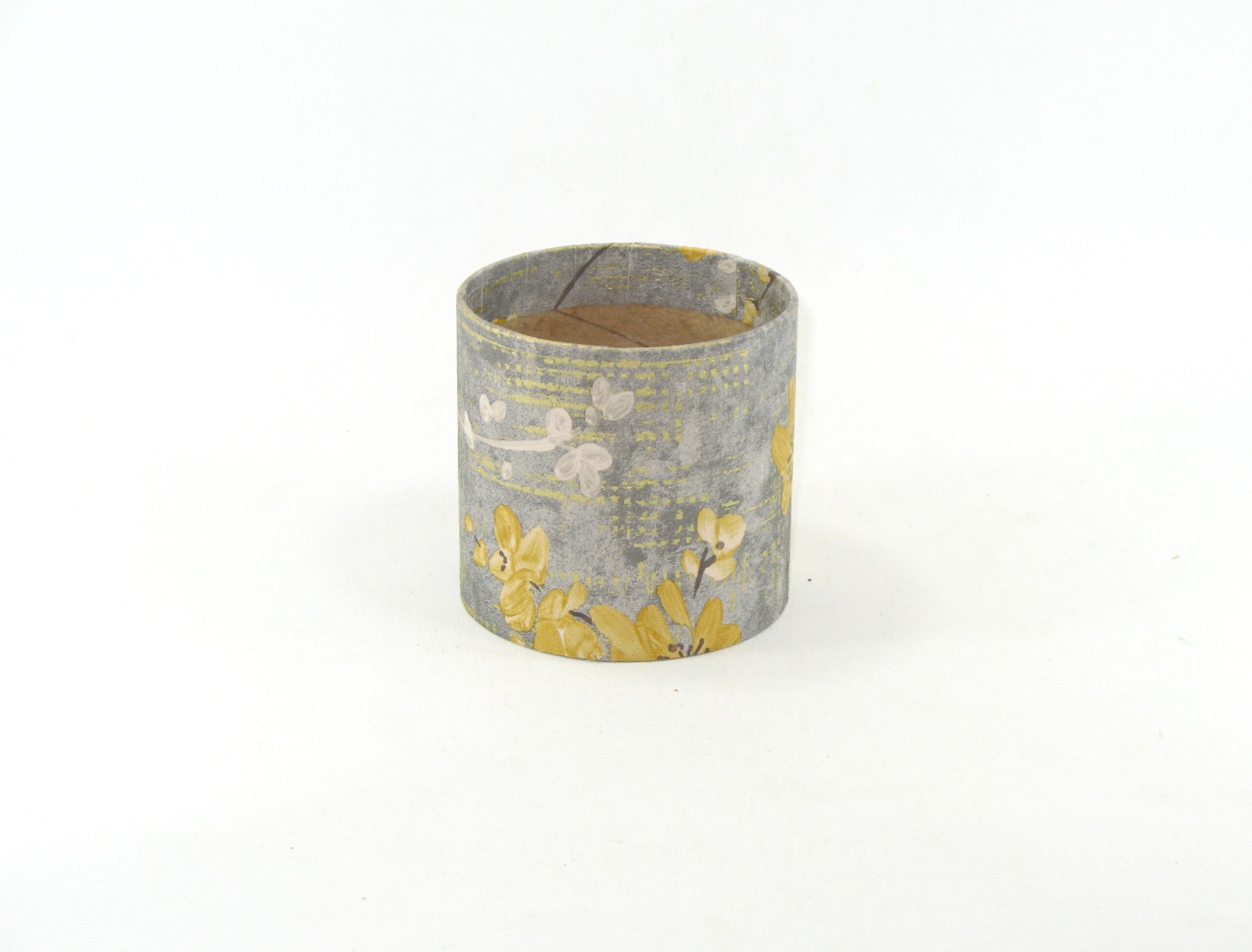 Papierová krabička s dekorom – vzor GRANDECO GREY, vonkajší prebal je z luxusnej tapety. Priemer 10cm, výška 10cm.