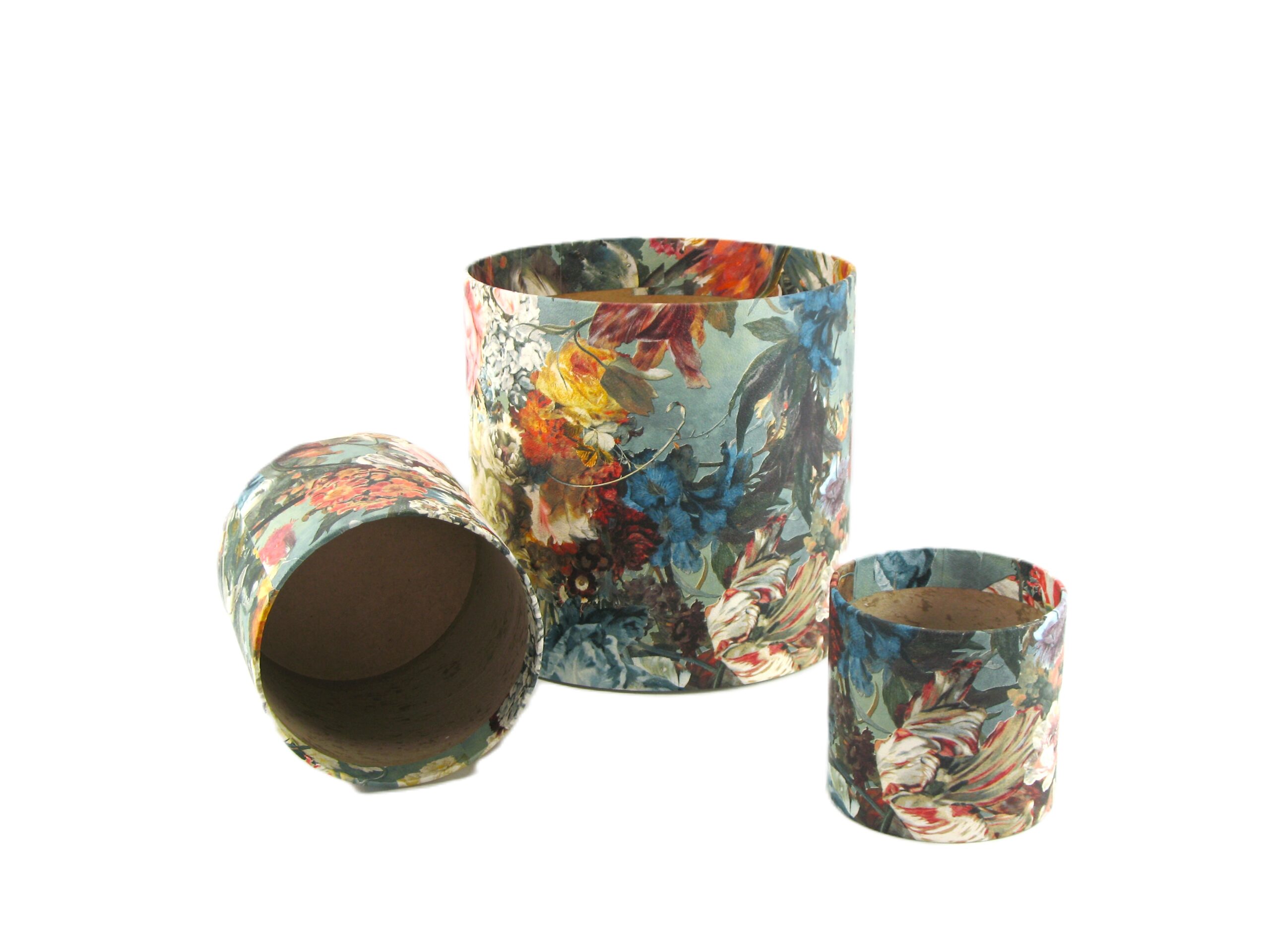 Papierová krabička s dekorom – vzor PARADISE BLUE, vonkajší prebal je z dekoratívnej tapety. Priemer 10cm, výška 10cm.
