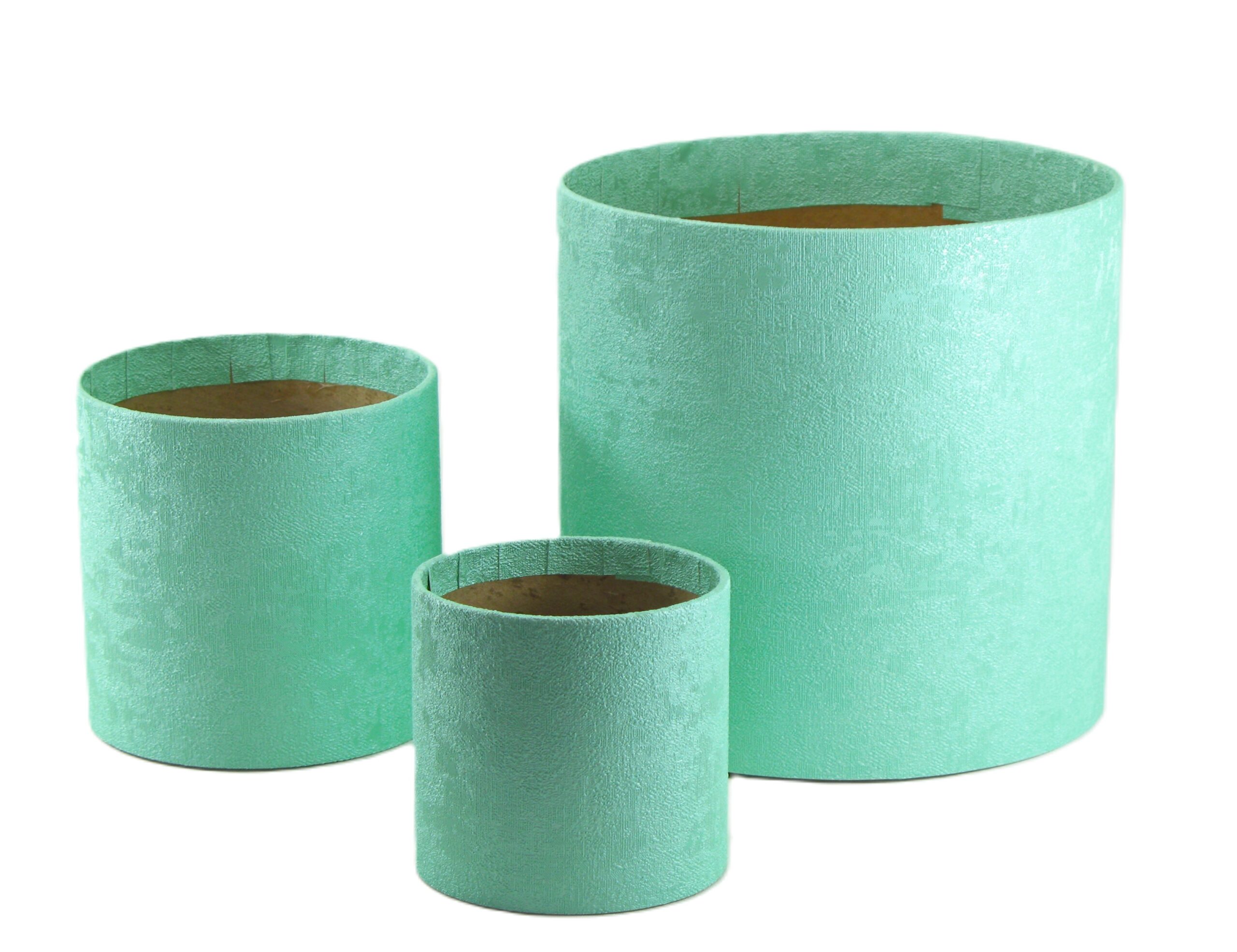 Papierová krabička s dekorom – vzor PARATO MENTOL, vonkajší prebal je z luxusnej tapety. Priemer 13cm, výška 13cm.