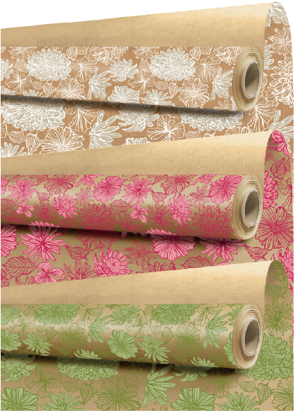 Kraft papier natur s potlačou, návin role 40 m, šírka 79 cm, gramáž 60 g/m². Využitie pre dekoračné balenie kvetov, tovaru a darčekov.