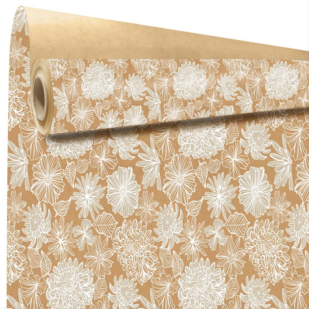 Kraft papier natur s potlačou, návin role 40 m, šírka 79 cm, gramáž 60 g/m². Využitie pre dekoračné balenie kvetov, tovaru a darčekov.