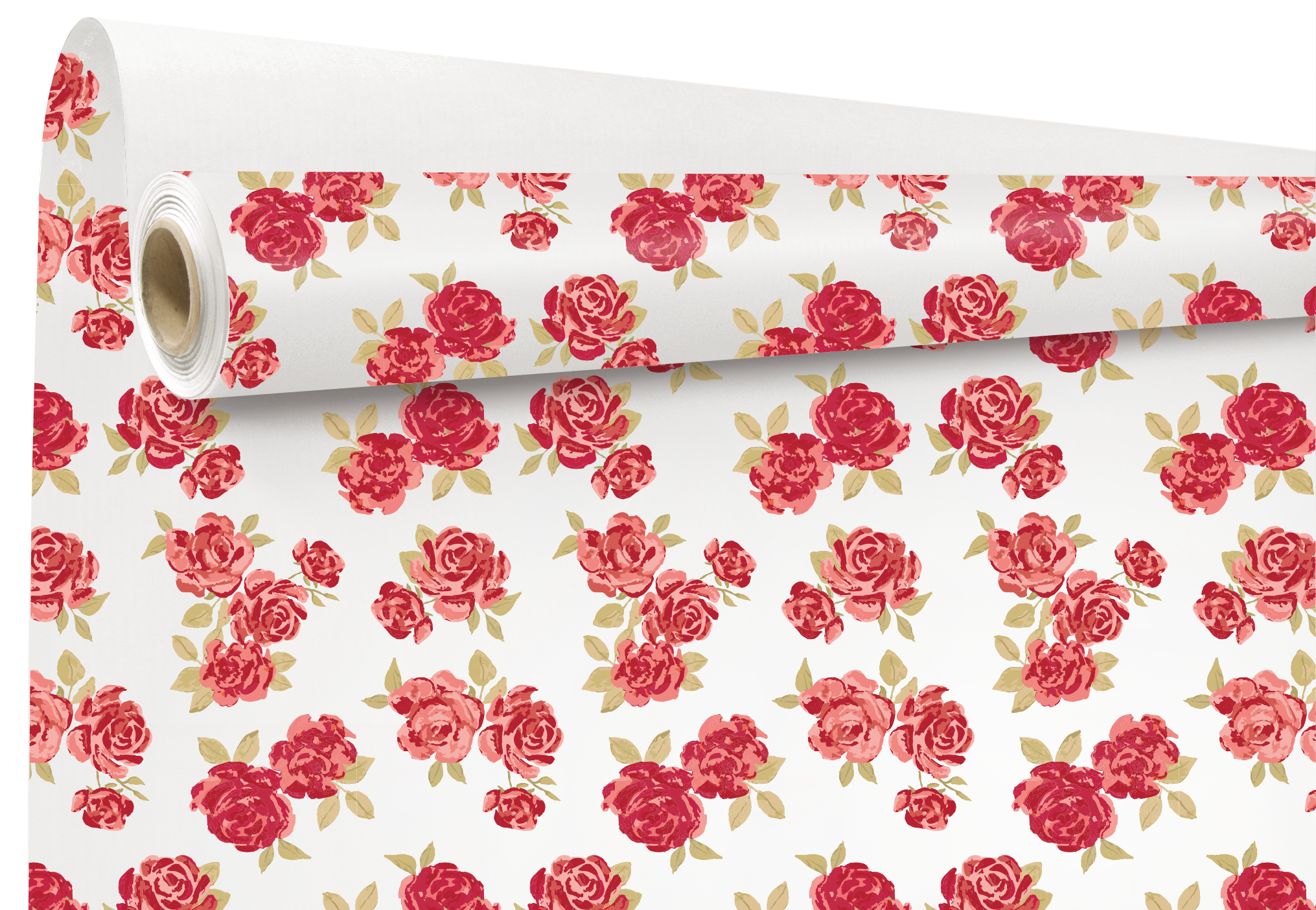 Kraft papier white s potlačou, návin role 10 m, šírka 79 cm, gramáž 60 g/m². Využitie pre dekoračné balenie kvetov, tovaru a darčekov.