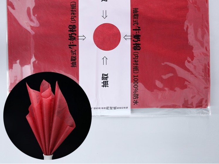 Cotton papierový hárok. Farba červená. Rozmery hárku 60/45 cm, hrúbka 28 mikrónov. Vodeodolný. Využitie pre dekoračné balenie kvetov a darčekové balenie tovaru. Balenie 38 ks.
