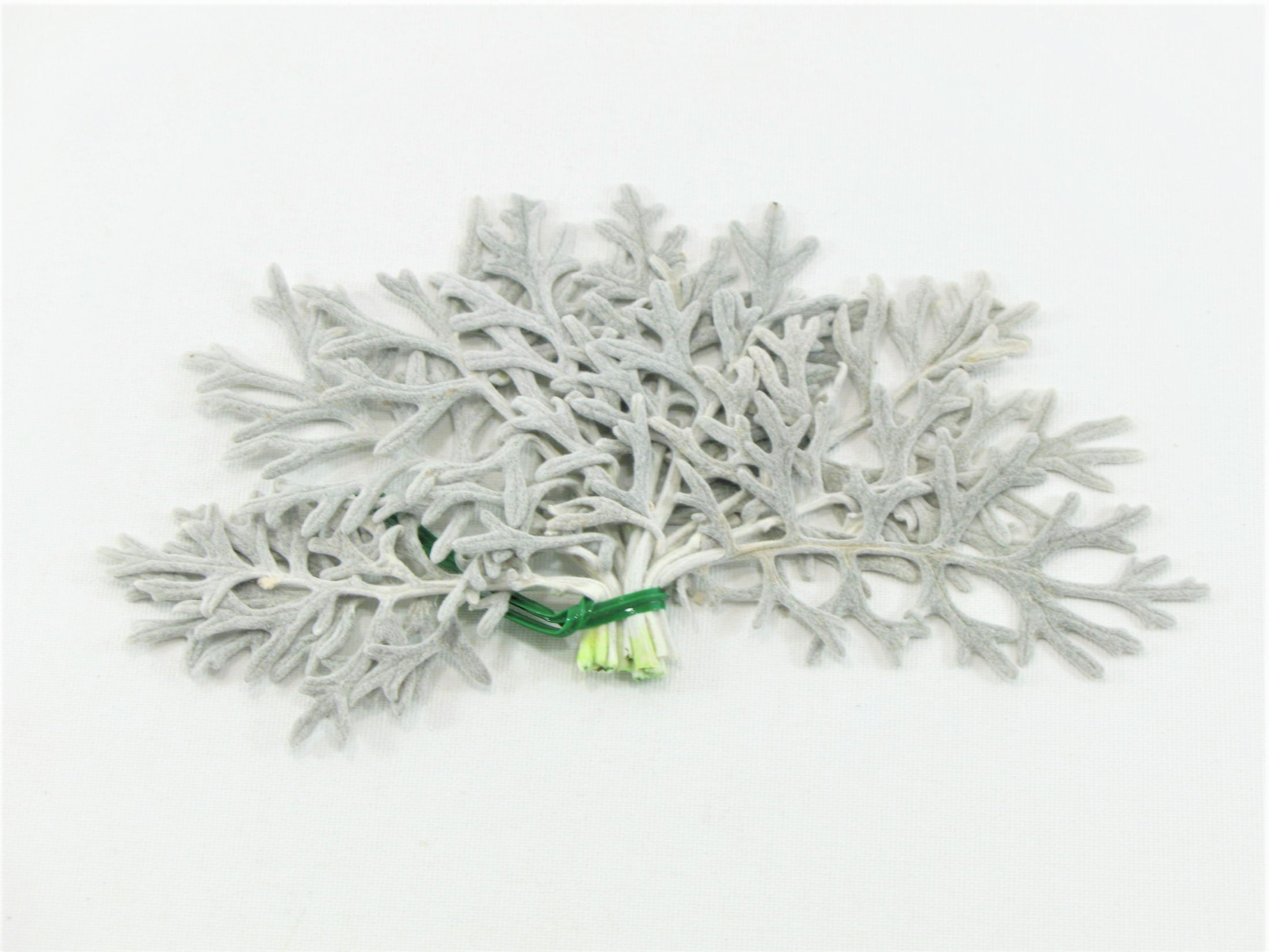 Stabilizovaná cineraria leaves, silver-white farba. Vďaka stabilizácii si rastliny zachovali svoje prirodzené farby a mäkkosť, čo ich predurčilo na dlhodobé kvetinové výzdoby. Stabilizované rastliny sú prírodného pôvodu. Rastliny sú bezúdržbové. Veľkosť 10-15 cm Balenie 10ks.