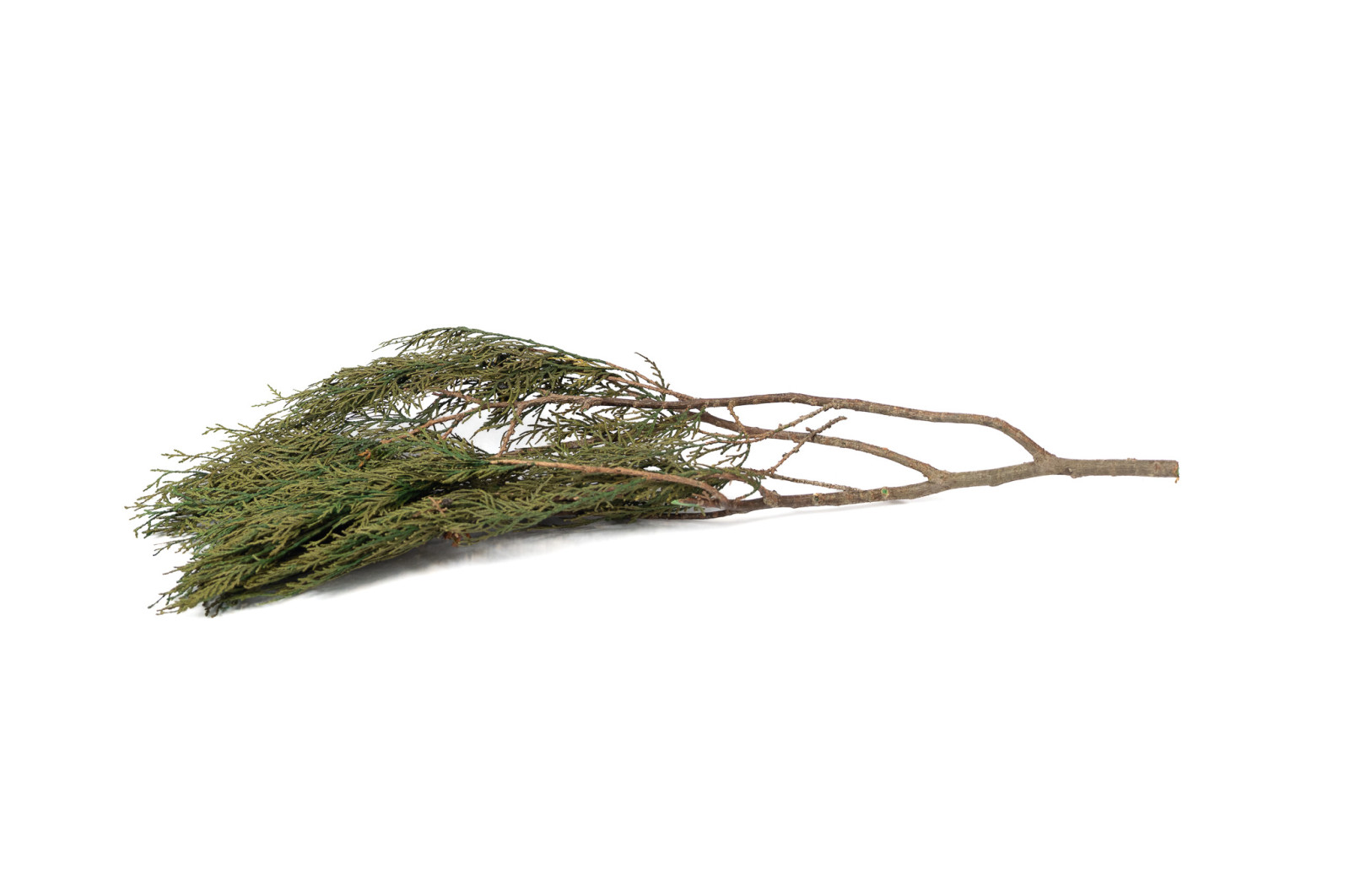 Stabilizovaná thuja, 50-70 cm, zelená farba. Vďaka stabilizácii si rastliny zachovali svoje prirodzené farby a mäkkosť, čo ich predurčilo na dlhodobé kvetinové výzdoby. Stabilizované rastliny sú prírodného pôvodu. Rastliny sú bezúdržbové. Stabilizované absorbciou v Číne. Balenie 130 g.
