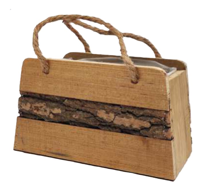 WOODEN BAG WITH BARK STRIPE 21x12/H16cm